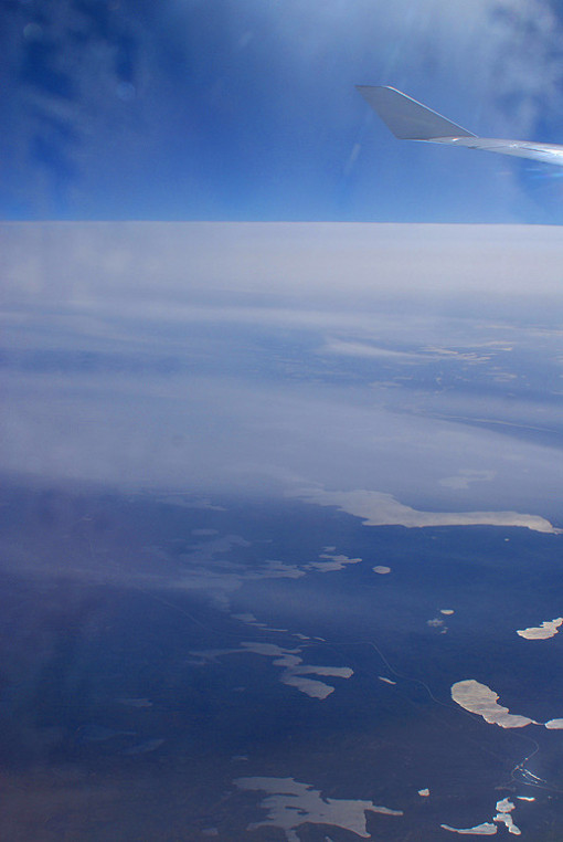 Der Inlandflug nach Las Vegas war wirklich spektakulär. Kurz vor der Landung sah ich fast alle Landschaften, die ich in den nächsten Wochen bereisen sollte, in Miniaturformat - den Grand Canyon, das Monument Valley, den Arches Nationalpark und das Valley of Fire. Leider gibt es nur Fotos vom Transatlantikflug. Das Schönste aber war der geschenkte Tag.