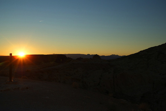 Eine weitere, aufregende Route stand an. Die ca. 530 km lange Strecke vom Valley of Fire über Las Vegas, Pahrump und Shoshone durch das Death Valley bis nach Lone Pine in Kalifornien. Der Tag begann mit einem phantastischen Sonnenaufgang.