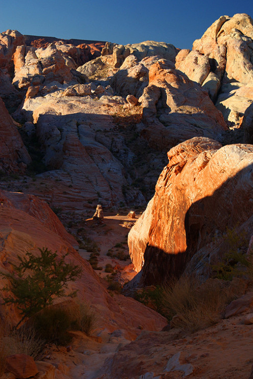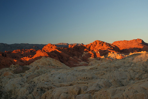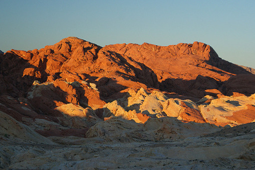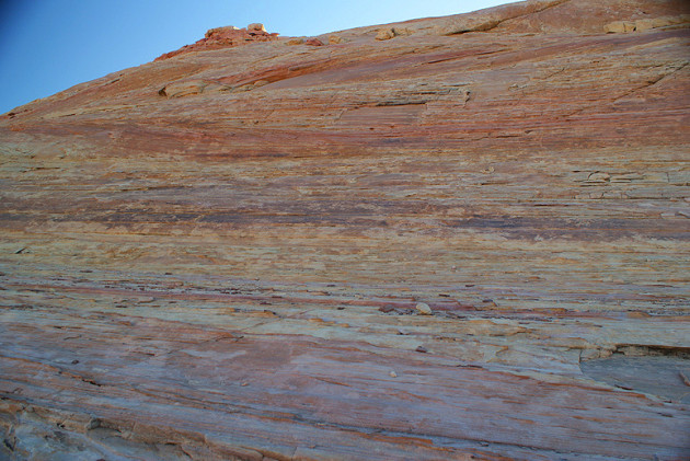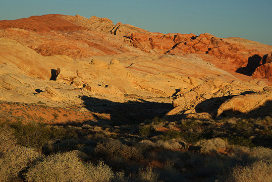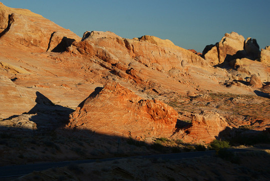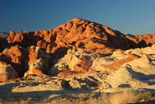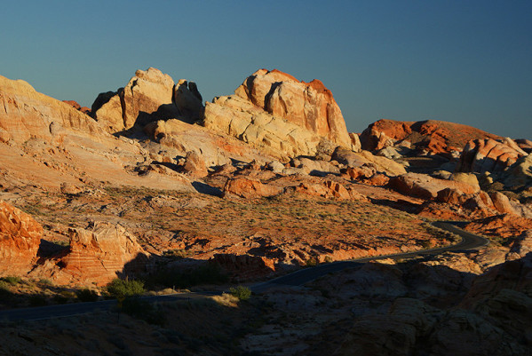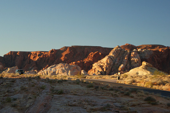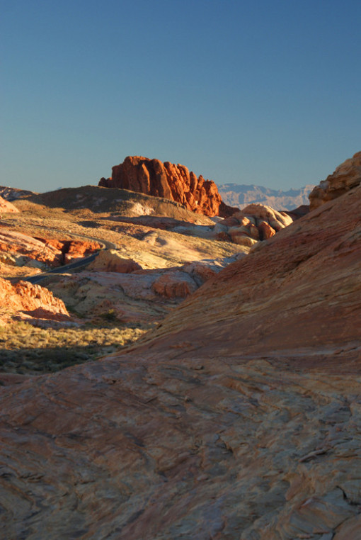 Der Silica Dome ist ein beliebter und besonders reizvoller Ort im Valley of Fire. Hier sieht man rote und gelbe Gesteinsschichten, die sich abwechseln. Das gelbe Gestein hat einen hohen Siliziumanteil. Das rote Gestein ist eisenhaltig. Dieser Anblick hier oben war wieder einer dieser magischen, die ich nie vergessen werde.