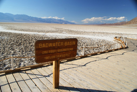 Badwater Basin. Der tiefste Punkt Nordamerikas - und der heißeste. An diesem Punkt werden jährlich weltweite Rekordtemperaturen gemessen. 112° Fahrenheit bzw. 44° Celsius waren es an diesem Tag.
