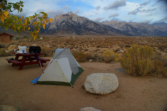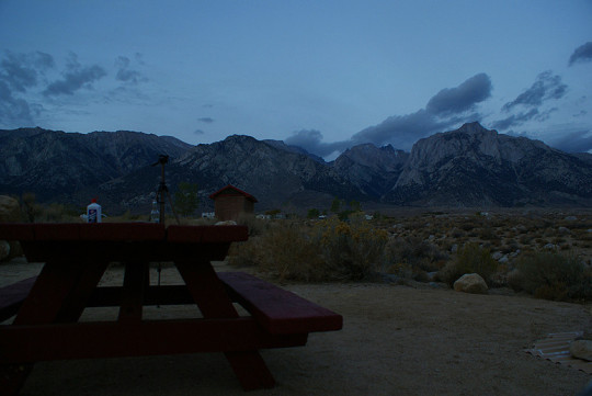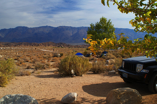 Der Tuttle Creek-Campground ist wirklich empfehlenswert. Zusammen mit dem unübertroffenen Devils Garden-Campground im Arches Nationalpark und dem Atlatl- Campground im Valley of Fire, war er der wohl schönste auf dieser Reise. Er liegt am Rande der skurrilen Alabama Hills bei Lone Pine am Fuße der südlichen Sierra Nevada. Der Blick über die wüstenhafte Ebene auf das Mount Whitney-Massiv ist einfach traumhaft. Auch hier ist die Stille bestechend.