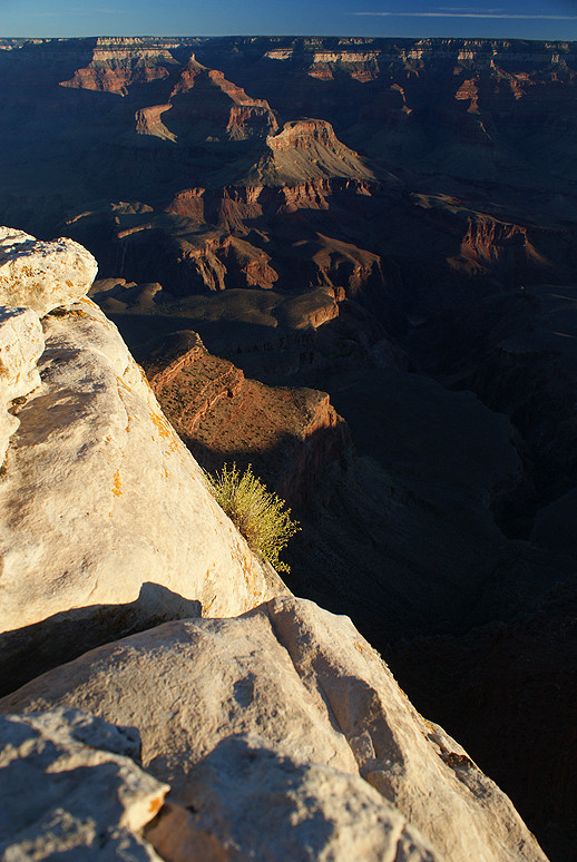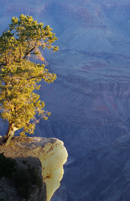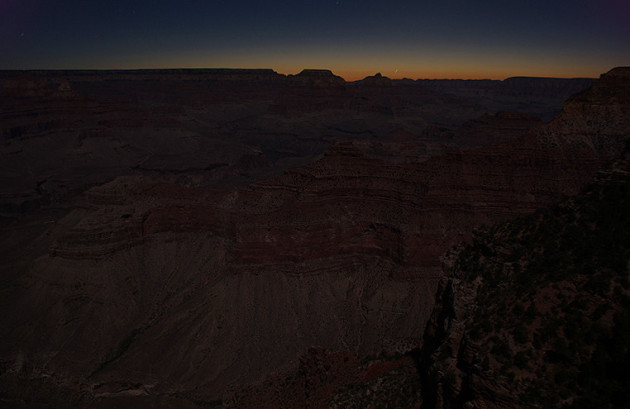Der erste Tag am Grand Canyon begann früh. Gegen halb drei wachte ich auf. Sofort war klar, was ich zu tun hatte. Es war Vollmond. Die Reise habe ich bewusst so gelegt, den Canyon im Mondschein sehen zu können. Es sollte sich lohnen. Um drei saß ich an der Kante, ganz in der Nähe des Mather Point. Absolute Stille. Surrealer Anblick. Aus der Rückschau war dieser Morgen sicher einer der schönsten.