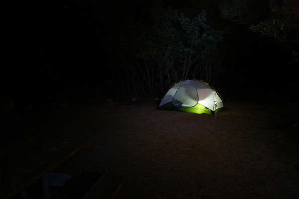Wunschlos glücklich legte ich mich in mein Schlafgemach. Allein war ich hier nicht-hinter meinem Zelt wohnte ein ganzes Rudel Maultierhirsche, deren Augen in der Dunkelheit funkelten.