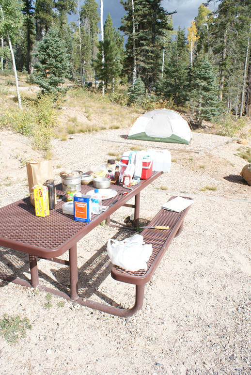 Lunch auf dem naturbelassenen Campground "De Motte" am Rande des Grand Canyon Nationalparks. Hier gab es wirklich nur ein Plumpsklo und einen Brunnen.